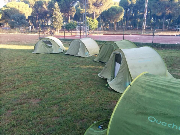 Tenemos una zona de acampada con un espacio amplio con capacidad para albergar más de 50 tiendas de campaña si fuera necesario.